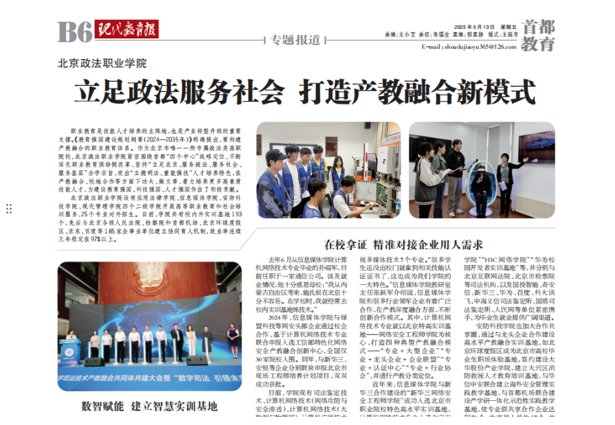 【现代教育报】betway西汉姆联官网:立足政法服务社会 打造产教融合新模式