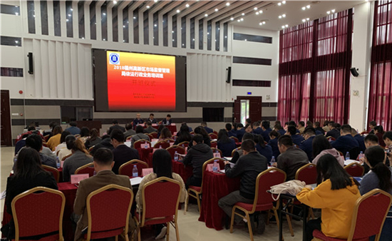 12月6日-7日,由福州高新区市场监督管理局主办,我校beat365中国官网承办的“2018年福州高新区市场监督管理局依法行政业务培训班”在福建中医药大学国际中医药培训中心开班。福州高新区市场监督管理局副局长李迎春,福州高新区党工委委员、管委会副调研员熊国华,副院长方方以及来自福州高新区市场监督管理局的干部职工、各企业人员共107名学员参加培训,开班仪式由李迎春主持。